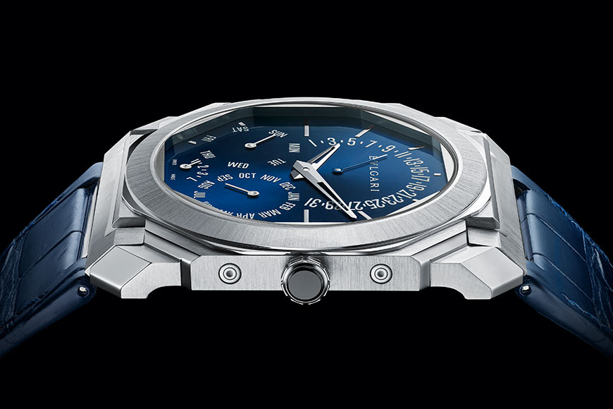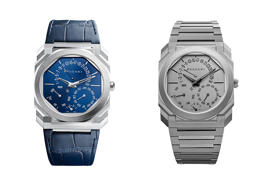 即使是超薄機芯亦集合驅動時針、分針,以及所有萬年曆功能:逆跳日期、星期和月份顯示以及逆跳閏年顯示。款式方面更備有鈦金屬款式和鉑金版本,配合穿搭需要。