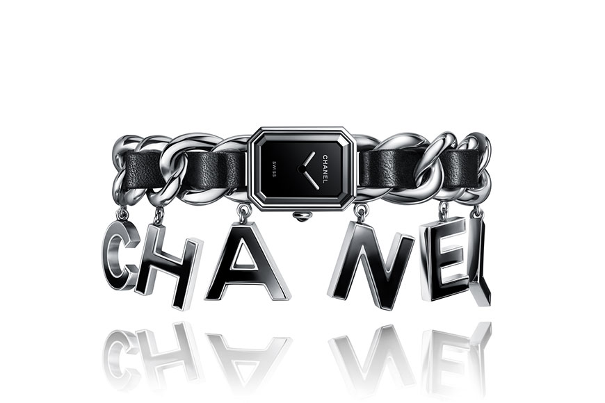 PREMIÈRE WANTED DE CHANEL 腕錶在錶鍊上墜飾著六個「CHANEL」字母吊飾,隨著腕際自由律動。
