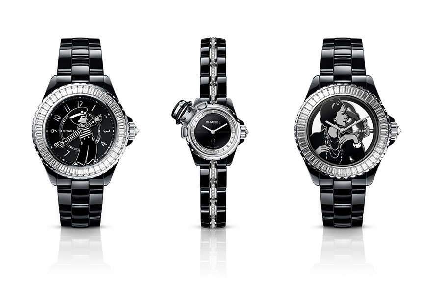 當年,當然不少得 Chanel 女士的可愛肖像出現。三款 Mademoiselle J12 腕錶,各限量55枚。它們分別是:Mademoiselle J12 La Pausa 腕錶、Mademoiselle J12·XS 和 J12 Gabrielle Caliber 3.1 腕錶。