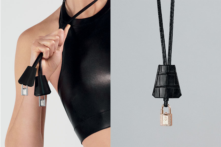 2022 的 Kelly 腕錶除了外型一關的優雅俐落設計,今年在配戴方式上更多添了一份靈活自由的配搭,除了發揮腕錶的功能,更可以將掛鎖穿上鈴噹造形的黑色 Box 小牛皮或亮面短吻鱷魚皮套並以皮繩固定,變身成一條項鍊。所有皮件都是以愛馬仕皮革工藝精製而成,因此可謂一物二用!