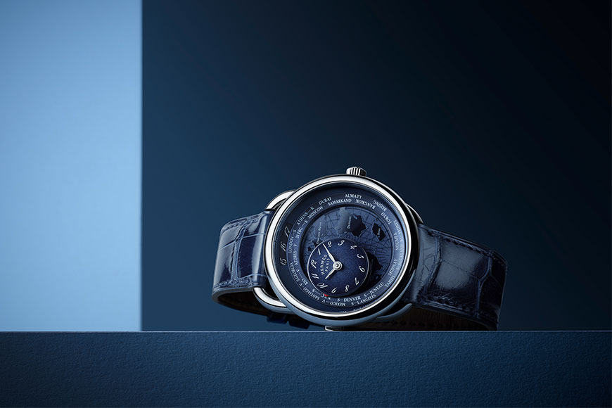 呼應 Hermès 「漫遊時光」旅行者的主題,Arceau 腕錶還有這個首次加入世界時區的設計。透過簡便且清晰的懸浮移動世界時區機制「環遊世界」,非常適合現在這個「後疫情」時期。