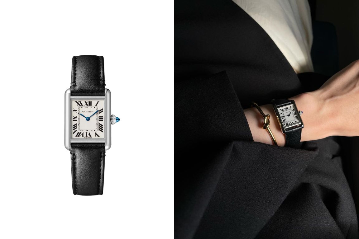 其實直至今日,Tank 腕錶已演變出多款方形系列,當中價錢屬入門版的大熱 Tank Must,以精鋼錶殼配黑皮革錶帶,令易於識別的經典外型,不乏俐落的時尚感。