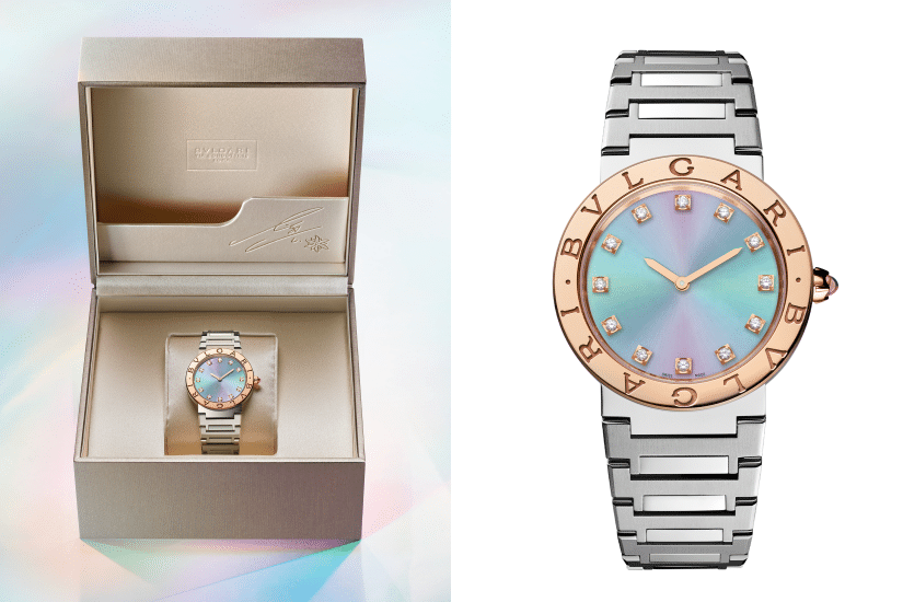 BVLGARI BVLGARI X LISA 限量版腕錶由 BVLGARI 在製錶發源地瑞士製造,搭配經過精細拋光和緞面打磨處理的精鋼錶鏈,搭載石英機芯,直徑 33 毫米款式限量發行 700 枚,直徑 23 毫米款式限量發行 300 枚。