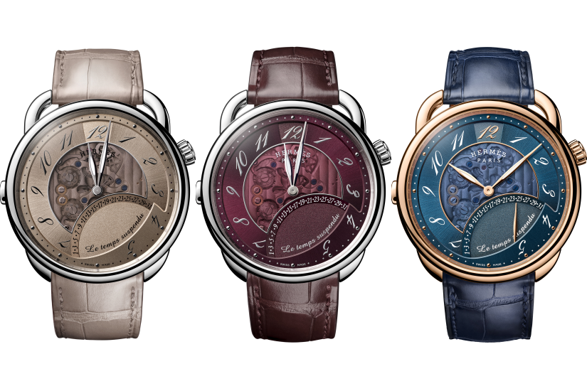 2011 年誕生的 Le temps suspendu 暫停時間腕錶,對愛馬仕時間哲學的首次功能性詮釋,透過按鈕啟動,即可令指針逆跳至初始位置,模擬時間靜止的瞬間。今年品牌為此概念續寫新篇章,推出 Arceau Le temps suspendu 暫停時間腕新作。