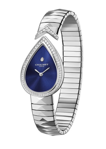 Chaumet再度以其經典Joséphine Aigrette系列腕錶引領珠寶錶界,推出全新設計,這次的亮點在於其深邃的藍色錶盤。這款腕錶不僅延續了約瑟芬皇后(Empress Joséphine)最鍾愛的梨形設計,還注入了品牌的標誌性藍色,與璀璨的鑽石相輝映,呈現出奪目的光澤。