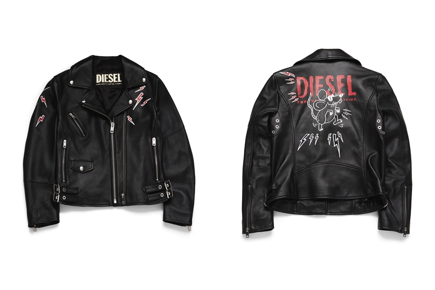 如上文所言,2020 鼠年男女膠囊系列備有 12 件極富時尚玩味的單品,而經典男女裝拉鍊機車皮夾克更是系列中的主打,採用大量金屬裝飾的夾克,肩部兩端飾有超大型 DIESEL 標誌、老鼠及閃電圖案,完美地將搖滾與趣味融合,不論是配上皮夾克長褲,還是普通 T-Shirt,都妥當得宜,亦為賀年穿搭帶來新的概念。