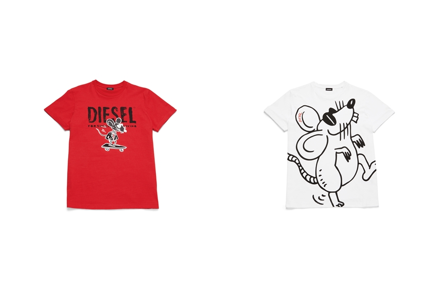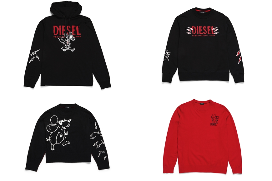 為營造不羈街頭氣派,DIESEL 採用了真實隨意的藝術風格,以手繪、動畫、塗鴉,以及塗刷等手法,繪製出栩栩如生的圖樣及充滿童真的老鼠圖案,低調簡約的卡通老鼠成為了系列的亮點,令人一見難忘,亦將品牌時刻尋求創突破的理念表露無遺,為每件新年單品增添獨有的美感!