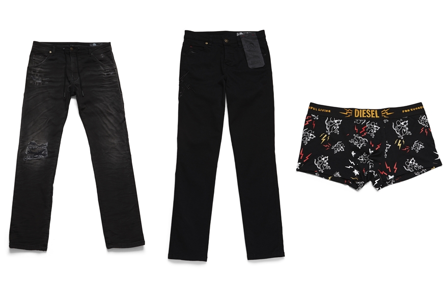 怕過於搖滾,長輩們難以接受的話,DIESEL 亦為大家帶來以午夜黑色為主調的羽絨夾克、雙面飛行員夾克,以及丹寧夾克等等,相對性的低調設計,不但能迎合老人家的「口味」,同時又可配合偏好素色簡約風格的你,加上一條拼貼老鼠圖案、淺水洗打造的修身 Jogg Jeans,簡單耐看,即使新年過後,都能時刻穿上,絕不過時俗套。
