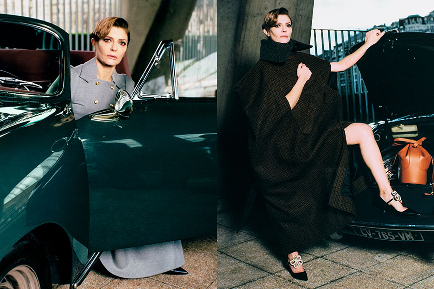 成熟高冷的 Chiara Mastroianni 身穿由 LOEWE 創意總監 Jonathan Anderson 設計的秋冬系列亮相。Fumiko Imano 把地場設定為古董開篷車及巴黎聯合國教科文組織總部大樓,Chiara Mastroianni 在充滿復古氛圍的場景下,演繹一系列冷色調新設計,配上她獨有的成熟味道,令 lookbook 散發濃濃電影感。