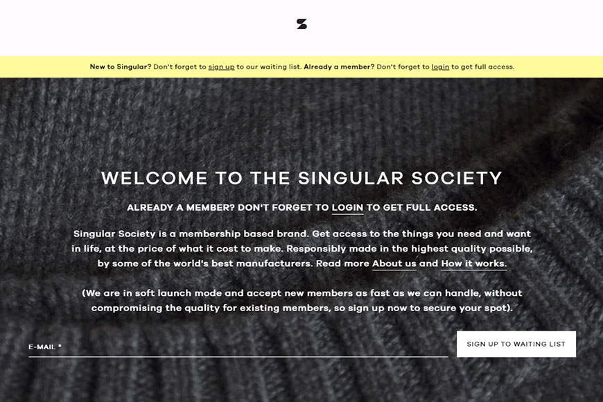 Singular Society 屬 H&M 集團首個會員製品牌,採用類似 Netflix 的訂閱模式,向會員提供高品質的服裝,甚至家居用品。雖然走高質路線,不過 Singular Society 依然保持了 H&M 集團一貫價廉物美的高性價比路線,依據官網的資料顯示,訂閱模式分為 BASE 與 PLUS 兩款,會員可選擇按月或按年的收費模式,以劃一收費在網站上任意選擇一定數量的商品。以 BASE 的計劃為例,你可以 9.5 瑞典克朗的月費,在網站上按個人需要每個月挑選 5 件商品。