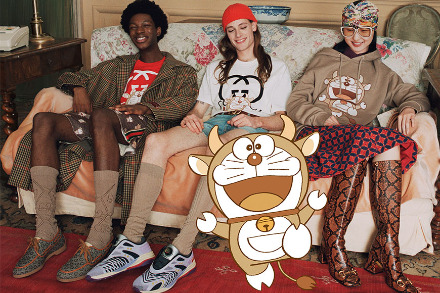 在一系列牛年精品系列,最令人愛不釋手的一定是 Doraemon x Gucci 的聯乘。是次破天方的合作標誌著《多啦A夢》面世50周年 (2020年) 和 Gucci 創立100周年 (2021年) 的紀念。