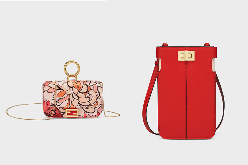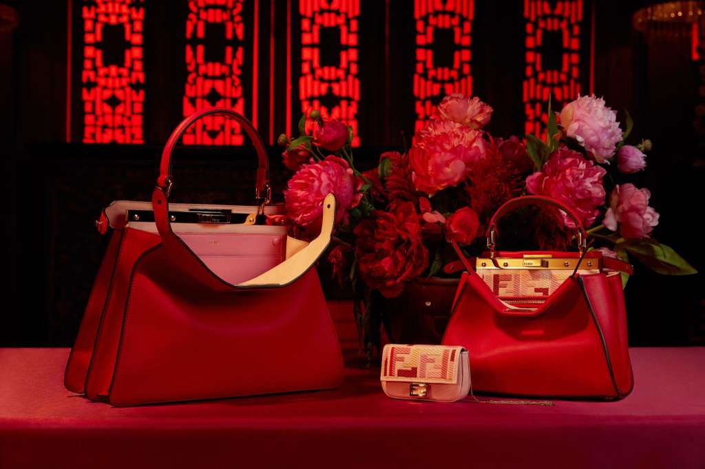 FENDI 同樣以紅色為主題配合花卉圖案,帶來一個充滿東方特色的新年系列。當中的花卉特別挑選代表長壽的桃花與象徵著繁盛、美麗與光榮的牡丹,再加入有幸福、吉祥、長壽、成功及和諧之意的粉紅色梅花,結合 FF Logo,時尚之餘同時帶來好兆頭!紅色皮革製作的 Peek-a-boo 和 Peek-a-phone 袋、還有添加刺繡圖案設計的 Baguette 系列都是系列的一大焦點。