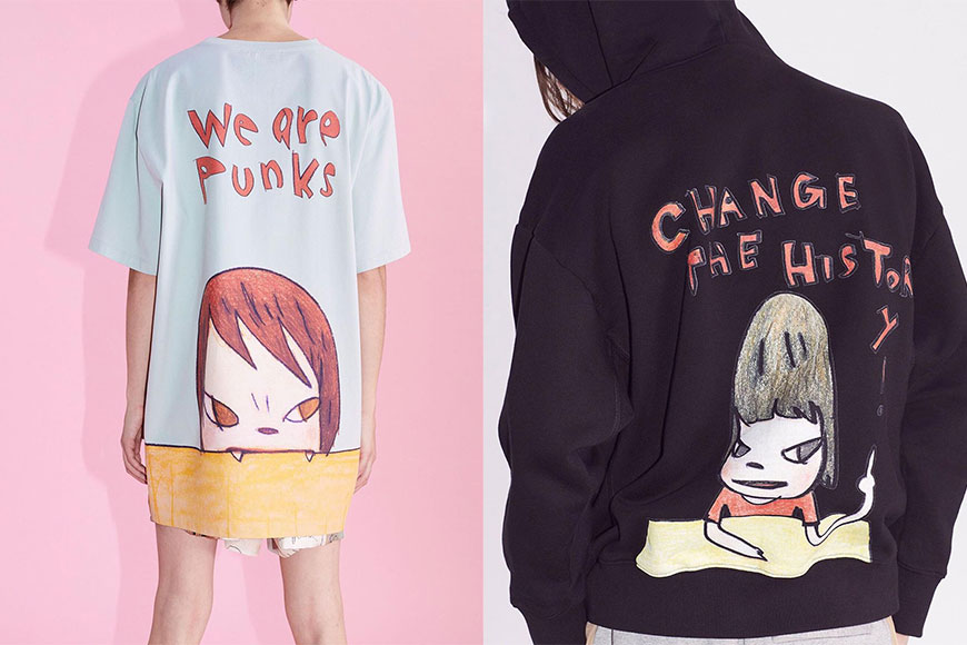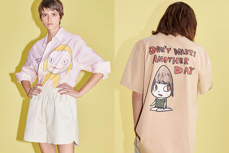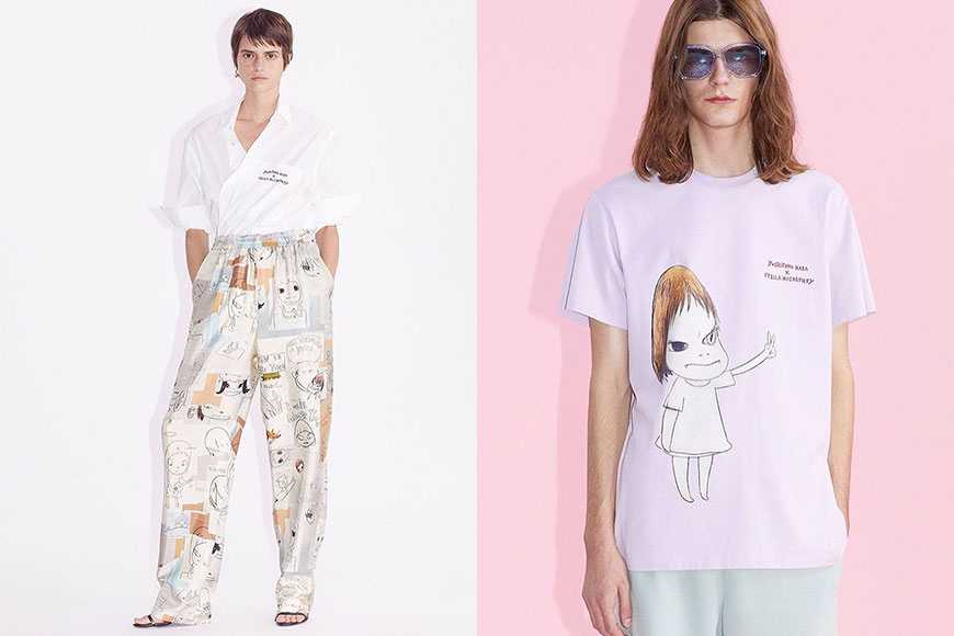 成為大師首個時尚合作對象就是環保時尚代表 Stella McCartney,兩者合作推出一個名為 Shared 2021 春夏系列。Shared 2021 的成衣及配飾上均印有奈良美智最具標誌性的女孩手插畫,配上 “Change The History”、”Don’t Wait Another Day” 及 “We Are Punks” 等口號,帶出具有批判精神的反叛特質。