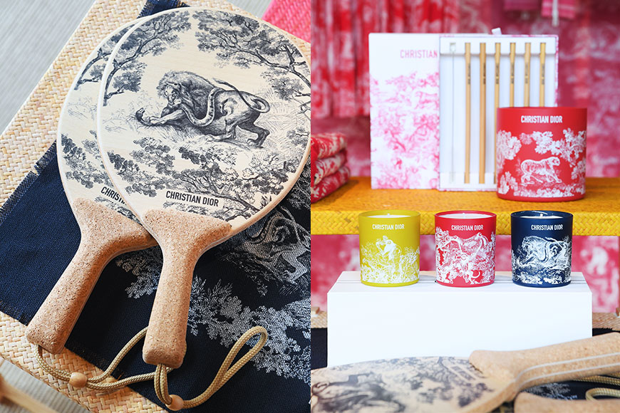 期間限定店亦帶來全港獨家發售的 Dior Maison 產品,例如飾有「Christian Dior」簽名樣式,以及 Maria Grazia Chiuri 設計的新版 Toile de Jouy 圖案滑浪板、太陽傘、吊床、沙灘遊戲及手搖扇,與一系列家居飾品、文具、座墊及餐墊互相呼應。