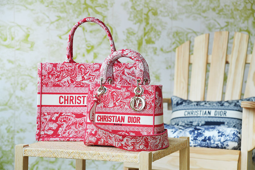 全新 Dioriviera 別注系列重新演繹 Toile de Jouy 以至 Dior Oblique 圖案等經典元素,配搭黃綠色、莓紅色等奪目色彩,以及取自 2021 年秋季系列的鮮艷配色,帶來 Lady D Lite、Dior Caro 及 Dior Book Tote 手袋、D-Connect 運動鞋、Dior Granville 草織底鞋,以及飾上度假勝地名字的水手條紋上衣、DiorClub 斗篷、圍巾、珠寶和護目鏡等。