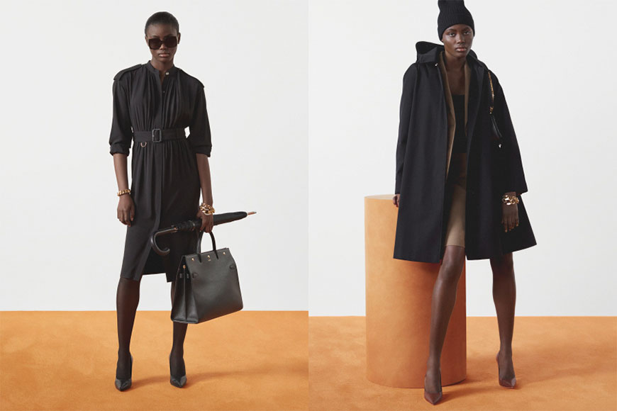 一系列男女裝包括 Burberry 主打的外套,如 Gabardine car coat 大衣,配可拆式抽繩兜帽、採用伸縮科技羊毛製作的 Harrington Jacket,以及輕盈高領 的 ECONYL® 纖維外套。系列還包括單排釦羊毛外套、意大利紡織喬其紗百褶裙,以及羊毛寬褲等。