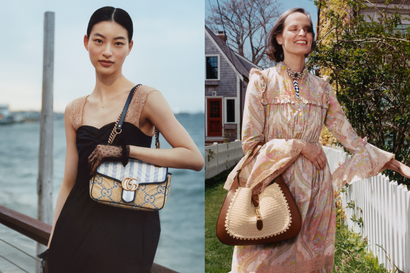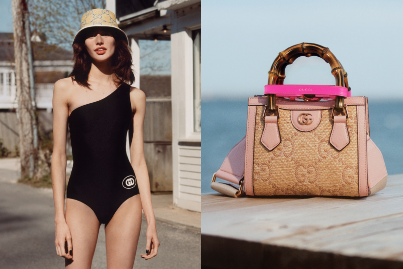 全新的Towards the Sun 系列利用面料交織成奪目的草織效果,並主打品牌經典的 GG 圖案,為多個袋款帶來新面貌。其中 GG Marmont 手袋以草織結合海洋風格的條子圖案,予人一種悠閒氣息;GUCCI Bamboo 1947手袋換上了柔和的粉藍調子,令人豁然開朗;另一款 GUCCI Diana 手袋,則以草織打造出藍色及米色的千鳥格紋圖案,展示不一樣的復古的魅力。