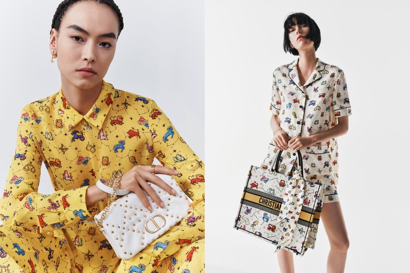 主題印花 Zodiac Pixel 以 Pixel Art 呈現星座圖案,搭配黃色、白色、黑色,點綴於多款連身裙、長褲、短褲、飄逸套裝,以及 Dior Chez Moi 系列浴袍,另還更有 Mitzah 絲巾、Walk’n’Dior 運動鞋等配飾,充滿有趣玩味。就連 Dior Book Tote、Lady D-Lite 及 Lady  Dior 等經典手袋也換上了印花圖案,令人耳目一新。