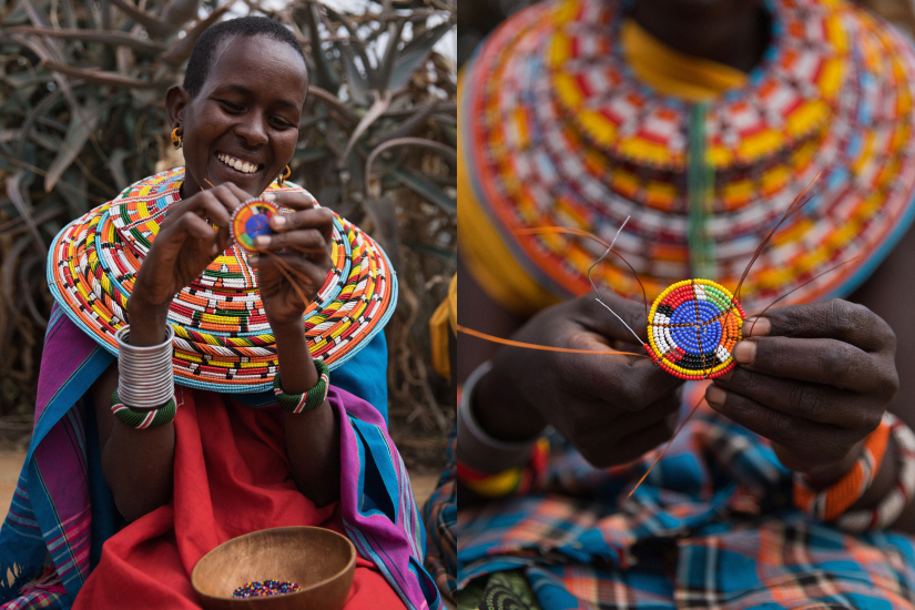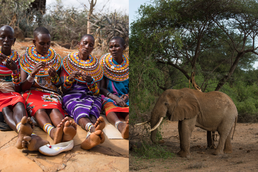 這款外型立體可愛的大象織籃袋,貫徹了品牌保育古老工藝的使命,由肯雅非牟利組織 Samburu Trust 的工匠手工製作,以酒椰棕櫚纖維編織,兩隻大眼睛鑲滿彩色珠子。這種珠子工藝世代相傳,以之作頸飾、頭飾及首飾,圖案色彩鮮艷,是 Samburu 文化廣為人知的標誌之一。不同的顏色與圖案通常包含不同意義,構成豐富視覺語言,傳統上用作代表重要的日子及事情。