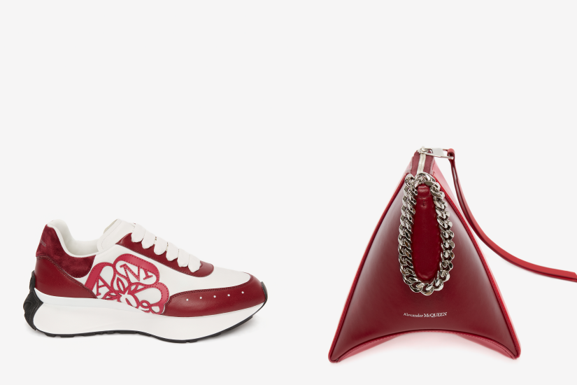 人氣 The Curve 手袋利用不同調子的紅色,大玩層次感撞色,搶眼度十足;經典的標誌性手袋 Four Ring ,也換上了透明紅色造型,呈現不一樣格調;另外還有粉紅併酒紅色的 Sprint 跑步鞋。