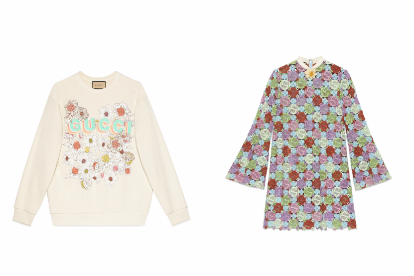 Gucci Lovelight 系列配備服飾、鞋履、配飾、珠寶等,以豐富繽紛的色彩配上奪目閃爍的圖案,每款單品都亮眼度十足。服飾以花卉、愛心、流星為元素變成俏皮細節,點綴於針織上衣、Tee、衛衣、短裙、牛仔服飾等之上。