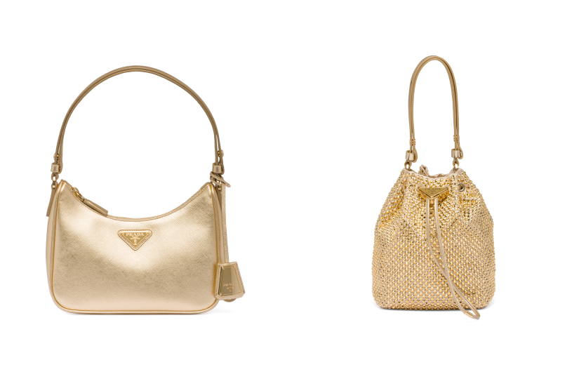 Prada 今年推出的七夕限定系列,以金色寓意點亮愛情,將品牌經典袋款帶來閃亮新詮釋,包括 Prada Re-Edition 2005 的 Hobo Bag、水桶袋、迷你的三角形手袋,分別以金色皮革,或綴滿金色水晶呈現炫目閃亮效果,也有帽款及髮夾等配飾,讓你以一系列閃亮單品,大膽高調放閃。