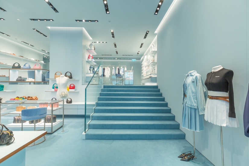 迎接新季,品牌繼續將優雅與前衛完美結合展現,其重開幕的新店,可以找到更齊全的系列新品。樓高兩層面積約 300 平方米,正門由金屬幕布和白色大理石框架組成,店內則以粉藍色調貫穿,從牆壁上的畫作和鏡子都以帆布覆蓋,提供了精緻優雅,同時副奢華格調的購物空間。