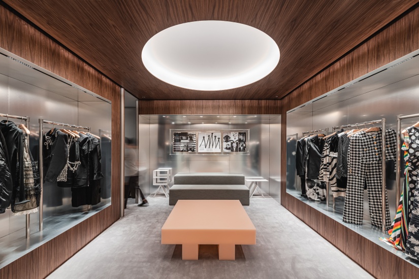 全新的旗艦店佔地 11,000 平方呎,嶄新的空間糅合不同質感,呈現獨到的視覺美學。設計理念是營造充滿對比的空間,來自 COLLECTIVE 建築工作室的首席建築師吳家瑩特別設計了一排小棚和高台,用來展示不同品牌和設計師,締造出清新柔美的格調。直線與曲線元素、柔和與硬質表面的交融亦呈現出剛柔對比。店內還有多個別出心裁的設計,例如把新世界大廈旗艦店的門把移師至新店,象徵對 Joyce 時尚傳奇的敬意。