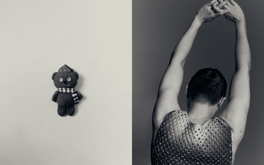 ⼀開始構思拍攝這輯相時,便決定⽤⿊⽩照,因為每種顏⾊都有意義定型;如粉紅代表女⽣,男⽣偏好藍⾊,⾦⾊代表富等,印象可以很刻板。我把顏⾊篩走,希望觀眾以個最平淡的⼼態切入。經這樣處理後,你未細味到拍攝對