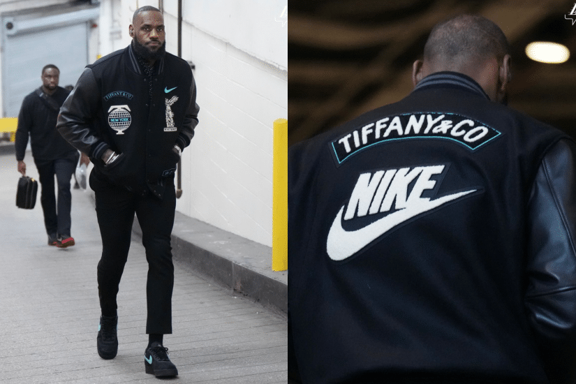 雖然 Tiffany & Co. x Nike 聯乘下月才正式登場,不過籃球球星 LeBron James 已經率先穿上 Nike x Tiffany & Co. Air Force 1 1837 運動鞋,另外更穿上雙方合作打造的 Varsity Jacket,地位超然!