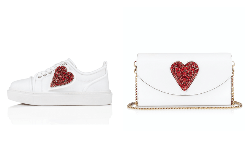 七夕情人節限量別注系列以不同大小的紅色閃爍水晶拼出紅心為焦點,搭配不同款式的男女裝純白鞋履。當中為可愛甜美女生而設的 I LOVE KATE 高跟鞋及 KATE LOVE 平底鞋沿襲品牌的經典鞋型,並在鞋頭鑲嵌紅色愛心水晶,以高級珠寶靈感展現細節魅力,靈動而不失法式優雅;想打造情侶裝穿搭,I LOVE ADOLON 男女同款運動鞋簡約的設計和色調營造出清新明朗的氛圍,精緻的愛心吊飾與鞋履內側的 Loubi 紅色細節相得益彰,與鞋面動感的線條互相呼應,盡顯格調。除了鞋款,更有設計如一封愛的信箋的金屬鍊帶包,裝滿俏皮愛意,譜寫七夕浪漫詩。