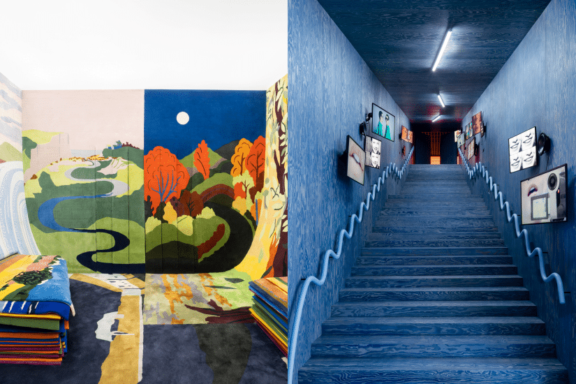 場地設計又令觀眾有如置身時裝展,可以近距離再欣賞 Jonathan Anderson 上任以來的時裝設計造型,並以多媒體角度展示品牌支持世界各地工藝發展的熱忱;場中又設有九個互動展廳,內容充滿驚喜:包括巨型皮革雕塑、教導如何正確唸出 “LO-EV-EH” 的 「發音隧道」 、與小童互動的及膝高展品、在鏡廳內的移動懸吊花園等,從中體現品牌的前衛時裝及工藝文化。
