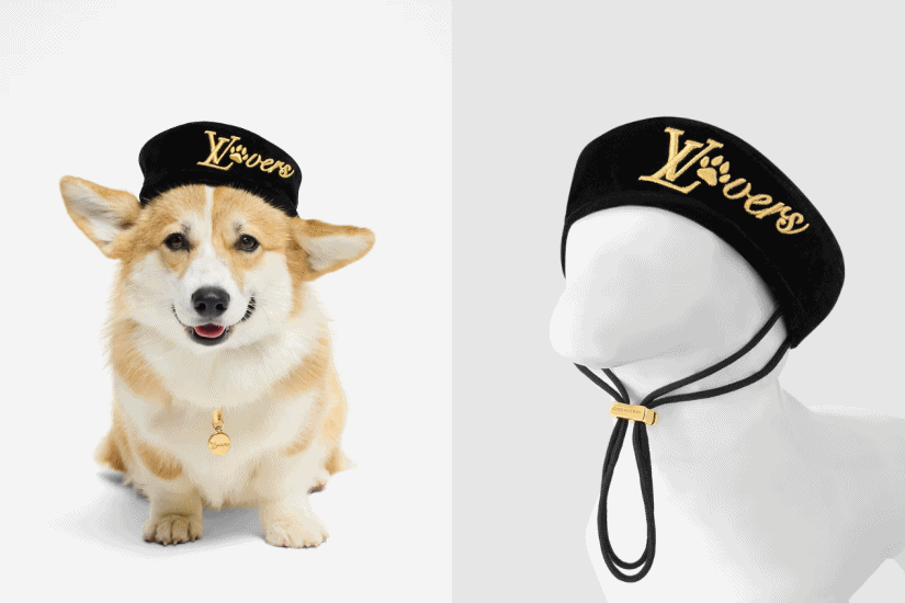 要與主人時髦合襯,狗狗當然也要有造型!「Dog Lvers」系列推出了一款黑色狗貝雷絲絨帽子,讓主人為寵物穿搭增添精緻氣息,設計融入標誌性掌印圖案的金色「LV Lovers」字樣。精緻又趣緻的帽子備有可調節鬆緊帶,確保「毛孩」穿戴舒適穩妥。