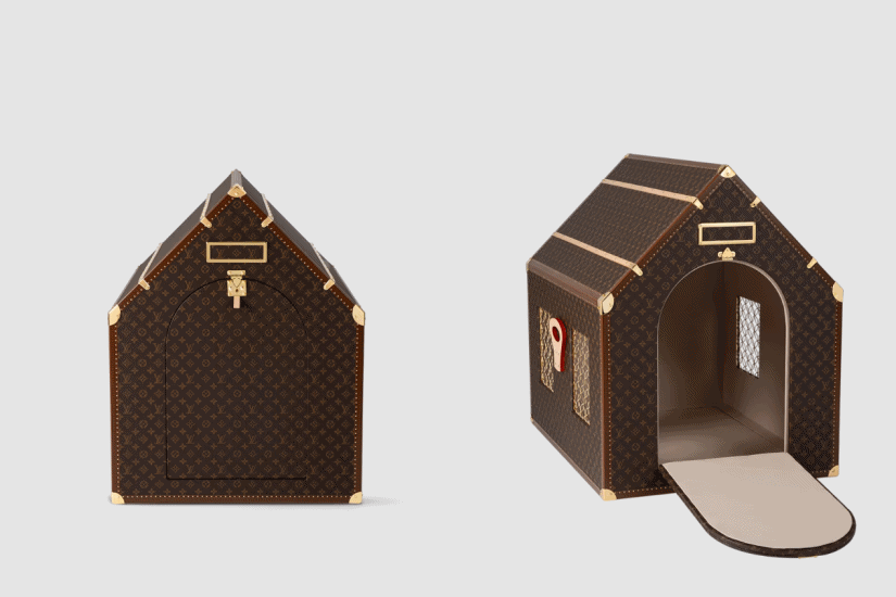 Pharrell Williams 將品牌經典的硬面行李箱改造成華麗狗屋,創作出這款外形宛如房屋的 Kennel Trunk,設計配有屋頂和窗戶,是為狗狗而設計的極致奢侈之作。硬箱設計實用,配有可拆式大門,底部還設有開口,方便清洗。