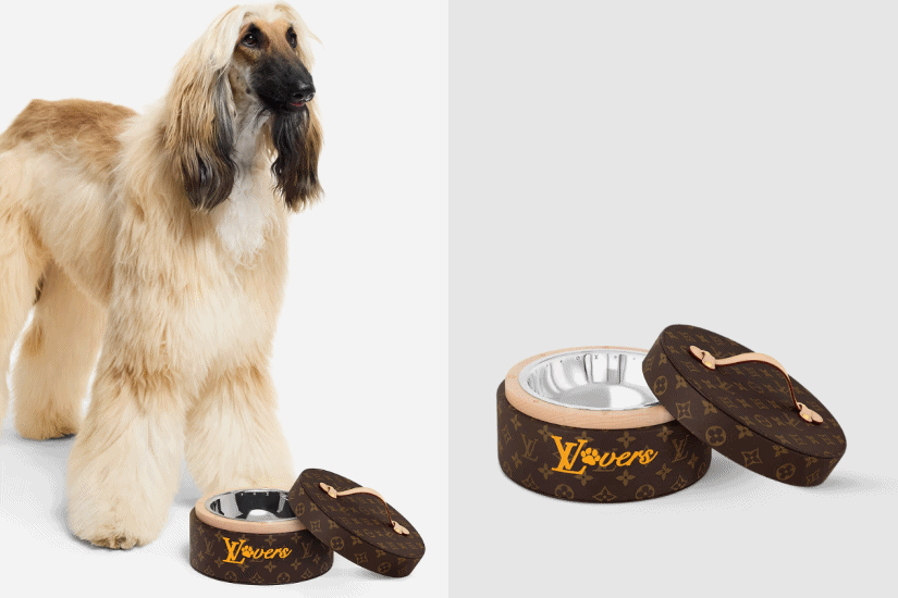 這款食物碗為狗狗用餐時光注入時尚魅力。設計以標誌性的 Monogram 帆布打造,綴以黃色「LV Lovers」字樣。不鏽鋼碗身可輕鬆拆除清洗,完美結合實用功能和前衛外型,底部更設有金屬爪,令碗身更加穩固。