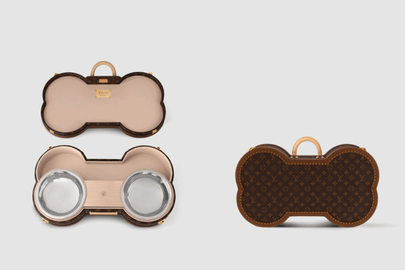 Pharrell Williams將品牌標誌性的硬面行李箱改造成這款 Bone Trunk。傳統的長方形設計經過重新演繹成骨頭形狀,是極具收藏價值的珍品。箱內設有一個漆面木製托盤,並配備兩個食物碗。托盤採用可拆式設計,還可存放牽繩或項圈等其他寵物用品。