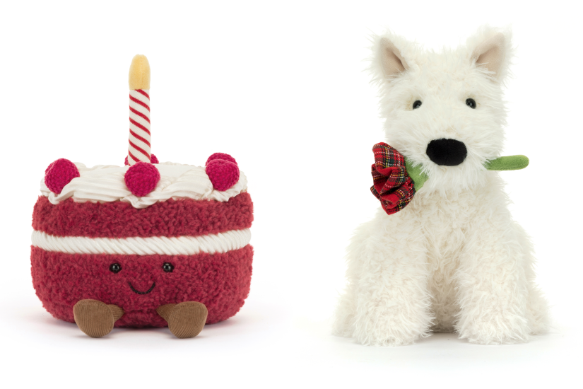不想送上鮮花,可以考慮人氣盆栽花束系列,Amuseables Rose Bouquetis 由三朵精緻的紅色天鵝絨玫瑰組成,加以刺繡的眼睛和張開的細燈芯絨手臂作點綴,精緻度十足。Amuseables Kerrii Cactusis 以亮紅色棉質紋理花盆和粗燈芯絨多肉植物,配搭Amuseables 系列標誌性的細燈芯絨材質和招牌笑容,萌趣十足!全新的 Amuseables 蛋糕角色,靈感來自廣受歡迎的經典紅絲絨蛋糕,配搭精緻的覆盆子裝飾和質感厚實的底座,極具特色。