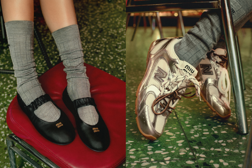全新系列完美捕捉佳節,備有寬鬆毛衣、束腰外套、學院風花呢和格紋單品、鑲石牛仔服、棉質府綢恤衫,搭配經典芭蕾舞平底鞋、樂福鞋、中跟搭帶鞋、Plume 運動鞋;New Balance X Miu Miu 運動鞋推出全新銀色調。還有華麗歌劇手套和精緻珍珠項鍊、棒球帽、玫瑰色眼鏡等配飾。