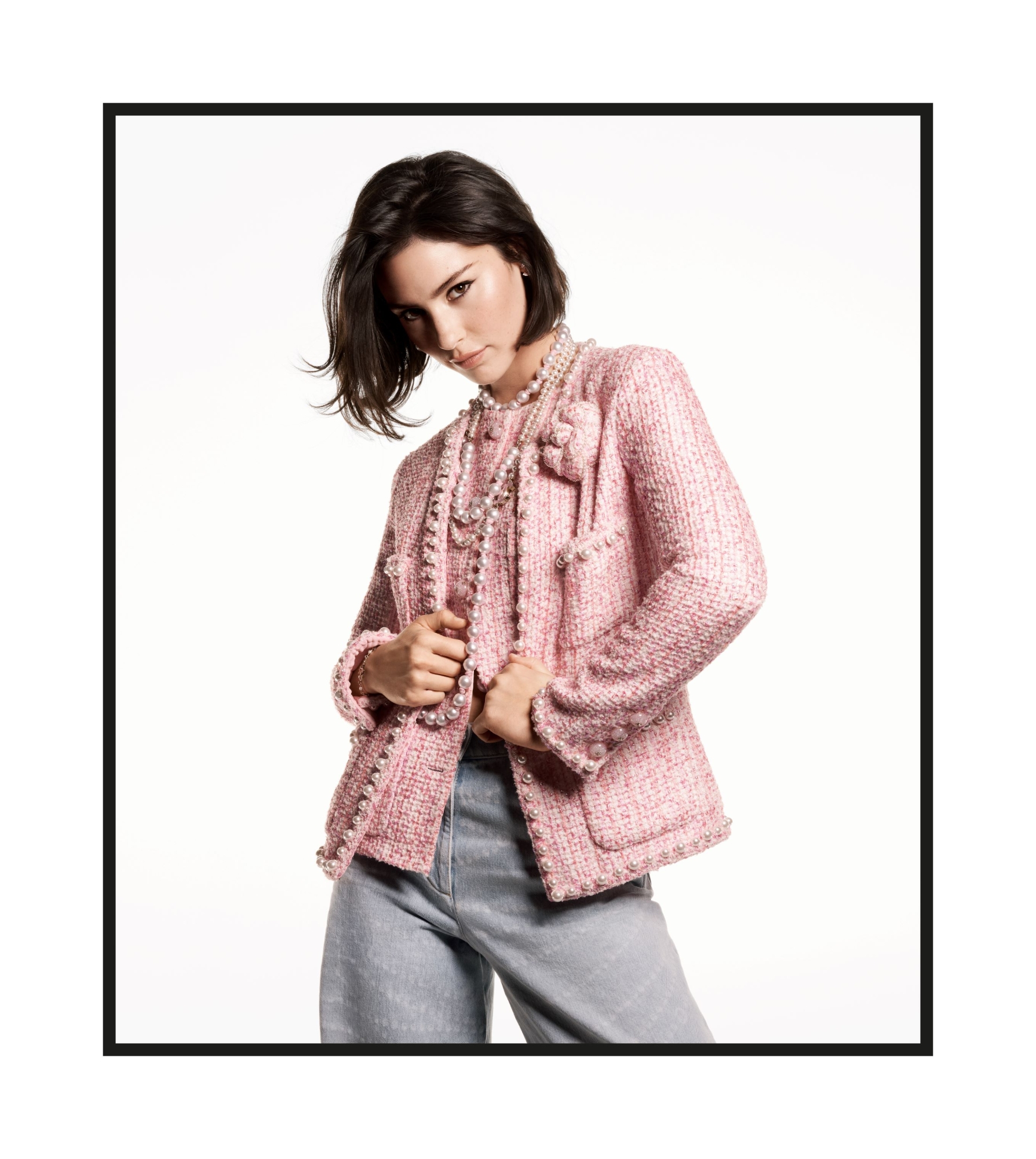 CHANEL 2025 春夏系列洋溢清新及九十年代的優雅氣息,以輕鬆歡愉筆觸重新演繹品牌經典設計元素,柔和色調的潮流及女性化配飾、仿斜紋軟呢編織外套及珍珠印花牛仔布,為 Chanel 魅力注入新意。