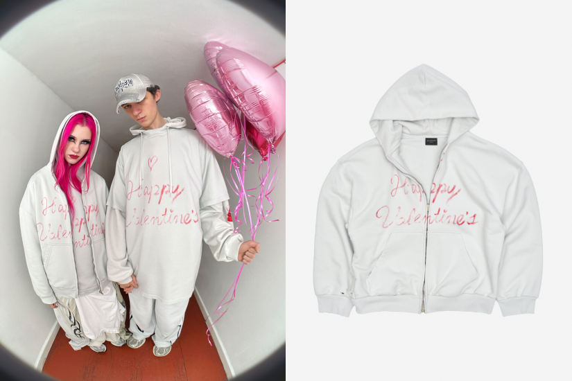 Balenciaga 發佈全新情人節系列,展示了洋溢著節日情調的圖案設計。經過做舊處理的拉鍊連帽上衣與T恤,採用品牌標誌性的超大號與小號版型,衣身印有手寫字體「Happy Valentine’s Day」與一首情詩,彷彿在為心上人準備特別驚喜,令人感受到滿滿的誠摯心意。