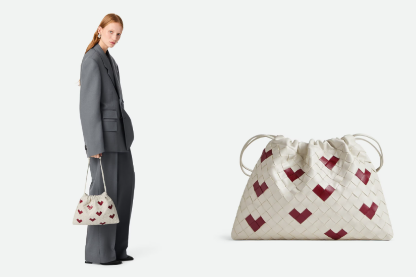 Bottega Veneta 於情人節,為多款採用標誌性小牛皮 intrecciato 編織工藝的手袋,加入愛心元素,好像這款白色 Dust Bag ,以織皮呈現撞色心形圖案,可愛又時尚;低調一點,可以考慮另一款 Wallace 手袋,飾上一個小愛心,不論情人節,還是之後搭配造型也好看實用。