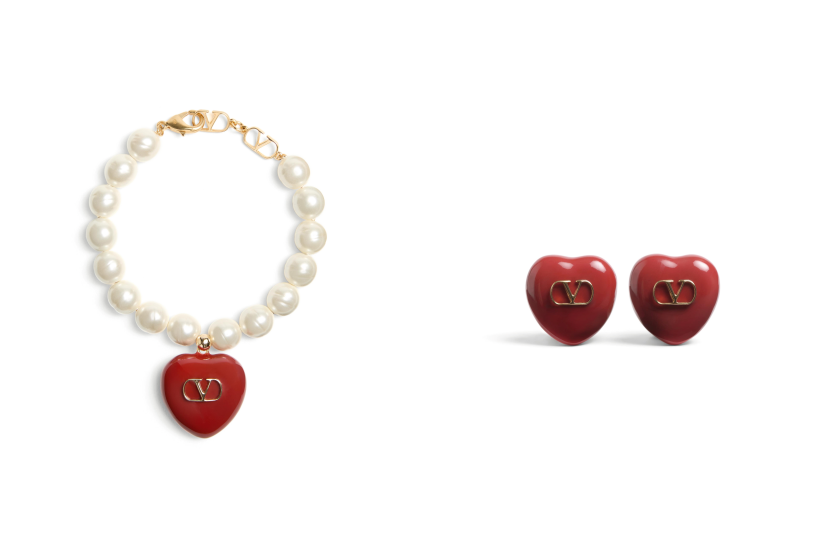 Valentino 這款珍珠手鏈及耳環,以紅色心形配上品牌的金色 Logo,精緻華麗又帶點浪漫復古氣息,最適合送給愛時尚的女生,為不同風格的造型注意入亮點。