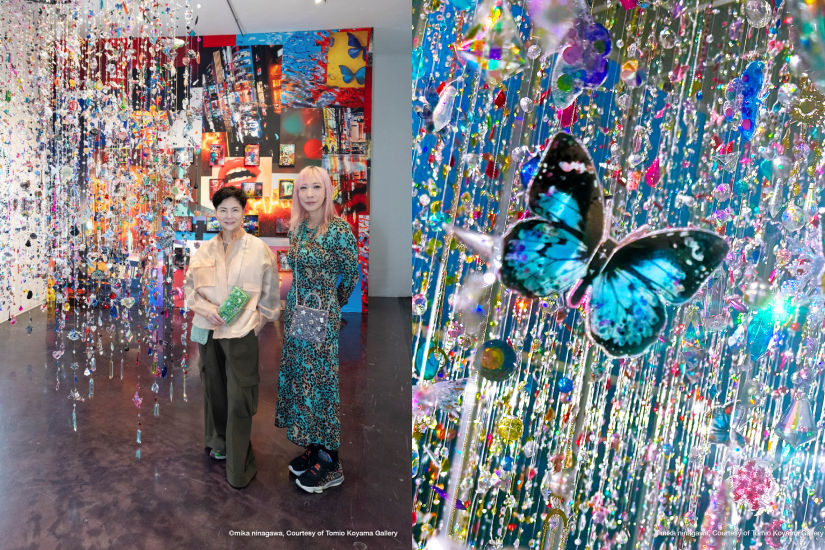 該展覽以「純真」和「渴望」為主題——分別是喚起童年時打開珠寶箱的喜悅,及與之形成對比的社會約束和未實現的渴望元素。蜷川實花聞名的絢麗色彩配合充滿生命力的裝飾,再透過攝影、立體藝術品及光影交錯的沉浸式設計,為觀眾帶來視覺與感官交織的奇幻感受。展出的兩件裝置藝術作品包括《Within the Breath of Light and Shadow》,它是一個由無數串水晶花環串成的作品,隨著自然光折射出耀眼的彩虹光影;而《Liberation and Obsession》是一系列通過顏色和影象反映藝術家內心世界的作品。