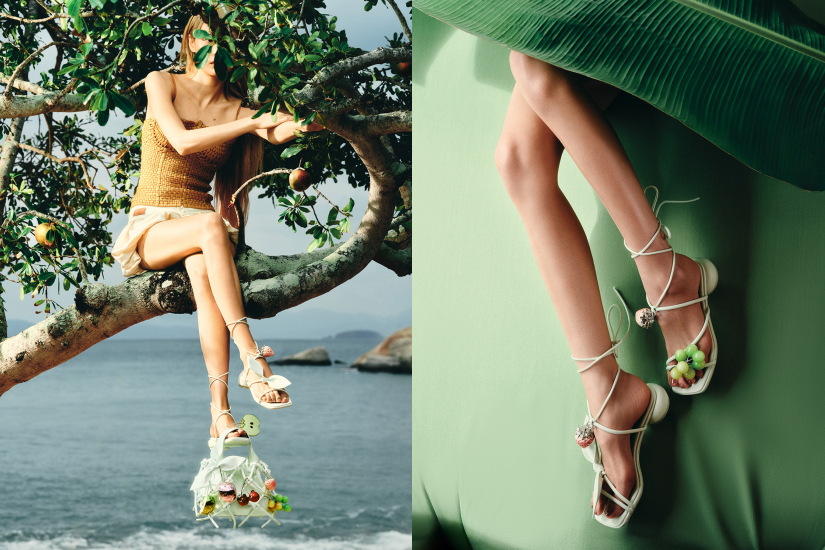 全系列包括一款手袋、一雙涼鞋以及五款吊飾。其中,鮮豔果實吊飾搭配薄荷冰沙色的 Ally 藤蔓抓皺包與藤蔓繞踝涼鞋,營造出夏日專屬的涼快氣氛。五款水果吊飾包括青蘋果、紅蘋果、士多啤梨、葡萄及櫻桃,可愛又雕塑感十足,而且擁有多種可能性,可自由裝飾於鞋履與手袋上,創造專屬於你的穿搭故事;更可作為髮飾、耳環或頸鍊吊墜,靈活點綴日常造型,展現百變風格。
