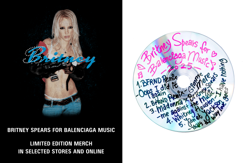 Demna 在 Balenciaga “Exactitudes” 春季 26 造型集中預告 Balenciaga Music | Britney Spears 限量音樂合作系列,也代表了 Britney Spears 首次參與時尚和音樂跨界合作。此系列包括多款限定版成衣與配件和一份由 Britney Spears 親自選編的獨家播放歌單,並收錄 了BFRND 根據她的兩首代表作 〈OOPS!… I DID IT AGAIN〉與〈GIMME MORE〉重新錄製的混音單曲。