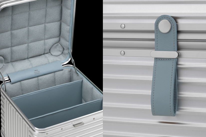 聯名系列的主打單品,鋁鎂合金收納方凳,是兩大品牌共同研發的最新力作,採用 RIMOWA 經典坑紋鋁材,並配備 Multiwheel 滾輪系統,方便移動。內裏鋪設 Vitra 織物,提供收納空間,更附帶可拆式皮革分隔層與靈活頂蓋坐墊,兼顧舒適度與實用性。