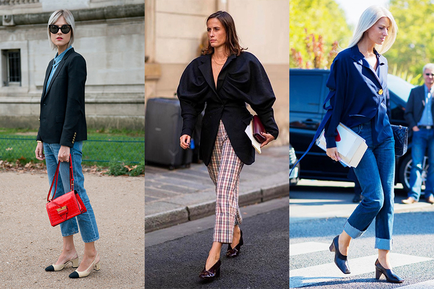 當街上的每位都深陷在 Dad Shoes 的熱潮內,或者你們也曾因為它笨重的外型而非常困擾,而最近曝光率極高的 Grandma Heels 就是大家的救星。它舒適的粗踭就更能拉長比倒,達到擁有長腿的視覺效果,提升大家街拍時的自信心。Grandma Heels 能配襯所有款式的褲子,不論是簡約率性的牛仔褲,還是大方帥氣的西褲,時尚度也不減。褲子的長度最好能夠露出腳踝,令雙腳更顯修長。