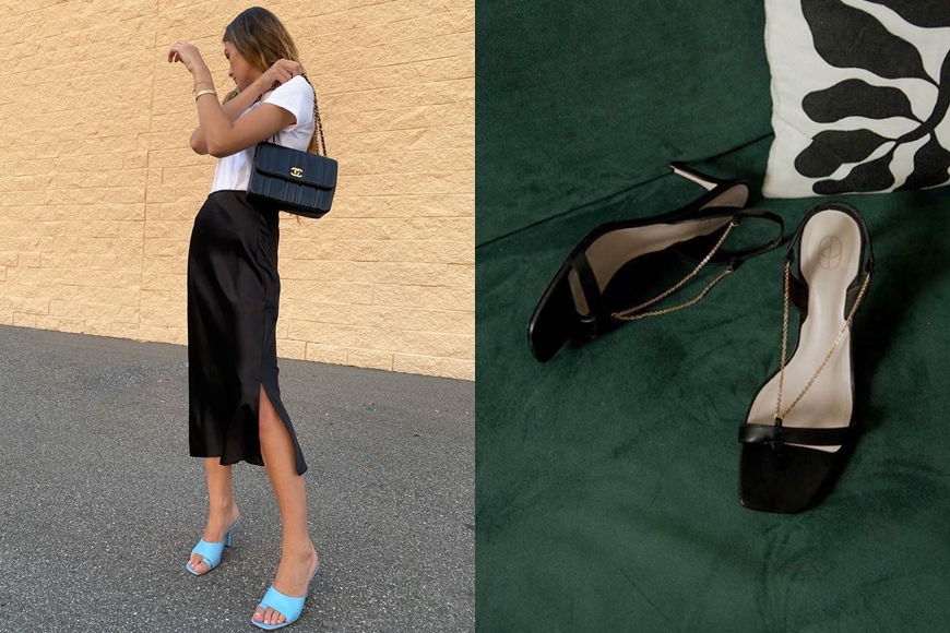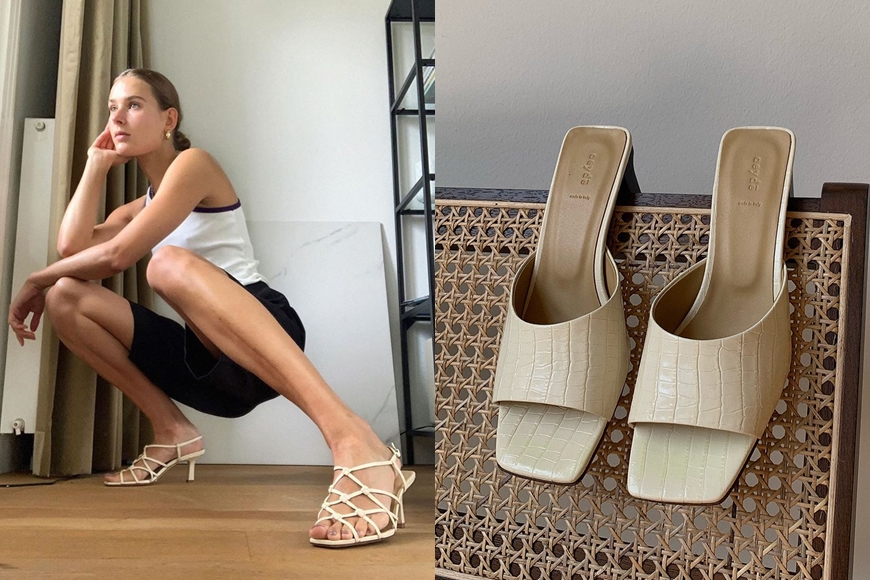 PORTE & PAIRE 的鞋款設計同樣以簡單俐落為主,造就出易搭耐看的特性。涼鞋大多採用了時下流行的方頭設計,配以交叉搭帶及幼鞋跟等細節,更具女人味,不論搭配連身裙、牛仔褲或是現時 fashionista 最愛的百慕達短褲都很時尚。其中一雙飾有 V 形金色鏈條的復古感高跟涼鞋,能顯雙腿修長,更成為了潮人熱搶款!