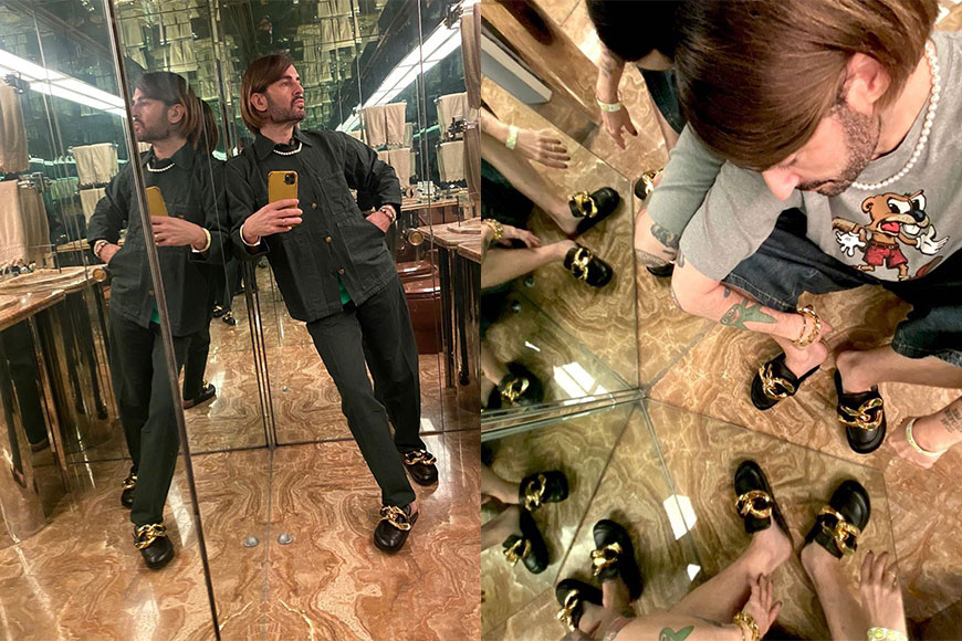 這雙 JW Anderson chain loafers 來自品牌的 2020 秋冬男裝系列,把簡單休閒的拖鞋加入誇張的金屬鏈扣細節點綴,令平凡拖鞋變得不平凡。好穿好脫的懶人拖,擁有多款百搭的配色,加上具有辨識度,就連設計師 Marc Jacobs 也對這雙 chain loafers 愛不釋手,連日來多次著上它在 IG 中自拍,大曬這對近期最愛!