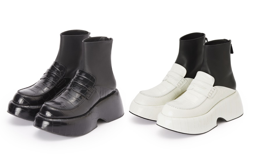 全新推出的厚底樂福皮靴,呼應着 Loewe 2021 秋冬系列的誇張線條比例主題,亦從男士鞋履抽取靈感,鞋款外觀流露着幾分剛陽色彩。呈短靴外型的設計,結合了軟皮樂福鞋及品牌襪筒細節,壓鱷魚皮紋鞋身與光滑小牛皮襪筒形成對比,配上加墊式厚底、橡膠鞋底及拉鏈襪筒等細節,看起來充滿視覺驚喜。系列備有黑色、白色、棕褐色、深棕色等設計,另外,還備有鑲飾釘款式。